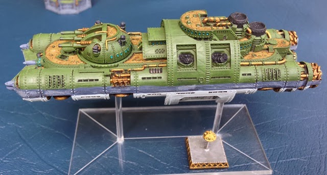 As usual I paint flying craft in my fleet with the Top Side Green, underside light pale blue with pointy front bits and side areas in colours from my Naval vessels.